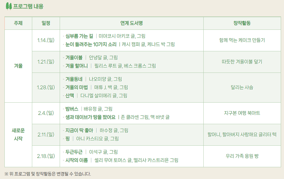 - 기간 2024.1.14 ~2.18 (매주 일)