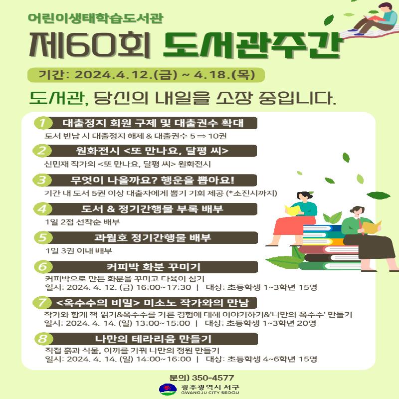 home 맘편한 내★일, 광주아이키움2.0 결혼·임신·출생 영유아 초·중·고 다양한 가족 일생활균형 커뮤니티 아동돌봄지원 소통방 나눔방 광주 아이키움 상담방 돌봄정보방 성폭력 피해 상담 및 사건지원 공지사항 우리동네 돌봄정보 기관별 공지사항 [어린이생태학습도서관] 제 60회 도서관 주간 행사📚 등록일 : 2024-04-12 15:35 카테고리 : 카테고리 없음 작성자 : 운영자 조회수 : 203 목록