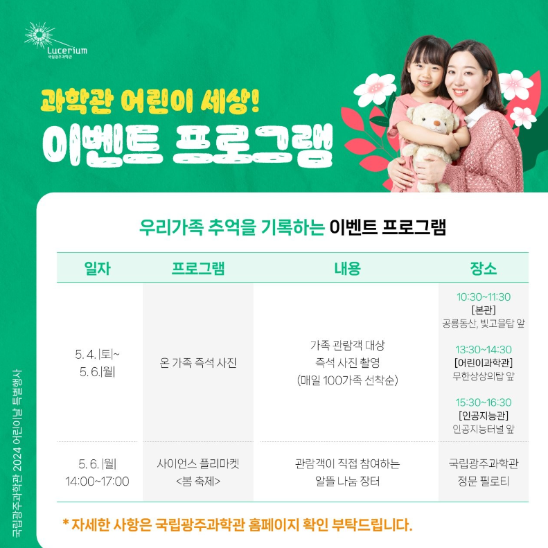 home 맘편한 내★일, 광주아이키움2.0 결혼·임신·출생 영유아 초·중·고 다양한 가족 일생활균형 커뮤니티 아동돌봄지원 소통방 나눔방 광주 아이키움 상담방 돌봄정보방 성폭력 피해 상담 및 사건지원 공지사항 우리동네 돌봄정보 기관별 공지사항 [국립광주과학관] 2024 어린이날 특별행사 등록일 : 2024-04-19 11:06 카테고리 : 카테고리 없음 작성자 : 운영자 조회수 : 235 목록