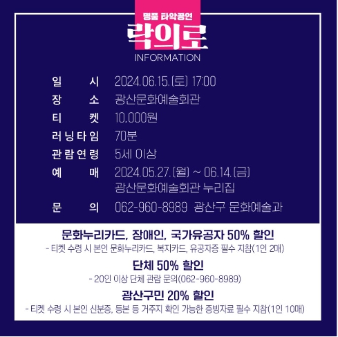 home 맘편한 내★일, 광주아이키움2.0 결혼·임신·출생 영유아 초·중·고 다양한 가족 일생활균형 커뮤니티 아동돌봄지원 소통방 나눔방 광주 아이키움 상담방 돌봄정보방 성폭력 피해 상담 및 사건지원 공지사항 우리동네 돌봄정보 기관별 공지사항 [광산문화예술회관] 타악공연 - 락의로 등록일 : 2024-06-03 15:45 카테고리 : 카테고리 없음 작성자 : 운영자 조회수 : 192 목록