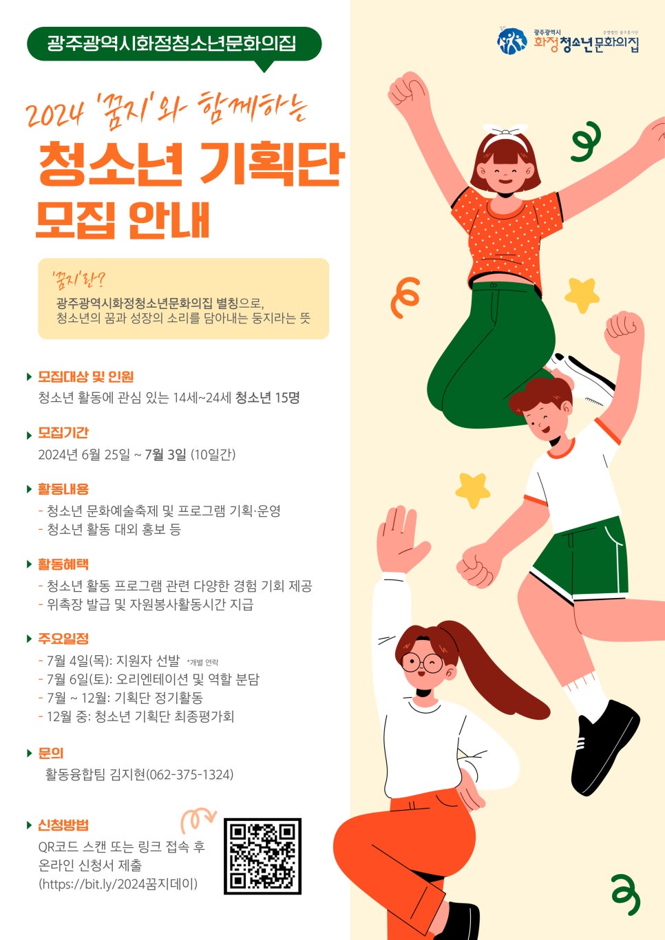 home 맘편한 내★일, 광주아이키움2.0 결혼·임신·출생 영유아 초·중·고 다양한 가족 일생활균형 커뮤니티 아동돌봄지원 소통방 나눔방 광주 아이키움 상담방 돌봄정보방 성폭력 피해 상담 및 사건지원 공지사항 우리동네 돌봄정보 기관별 공지사항 [화정청소년문화의집] '꿈지'와 함께하는 청소년 기획단 등록일 : 2024-07-02 14:52 카테고리 : 카테고리 없음 작성자 : 운영자 조회수 : 165 출처- 화정청소년문화의집 목록
