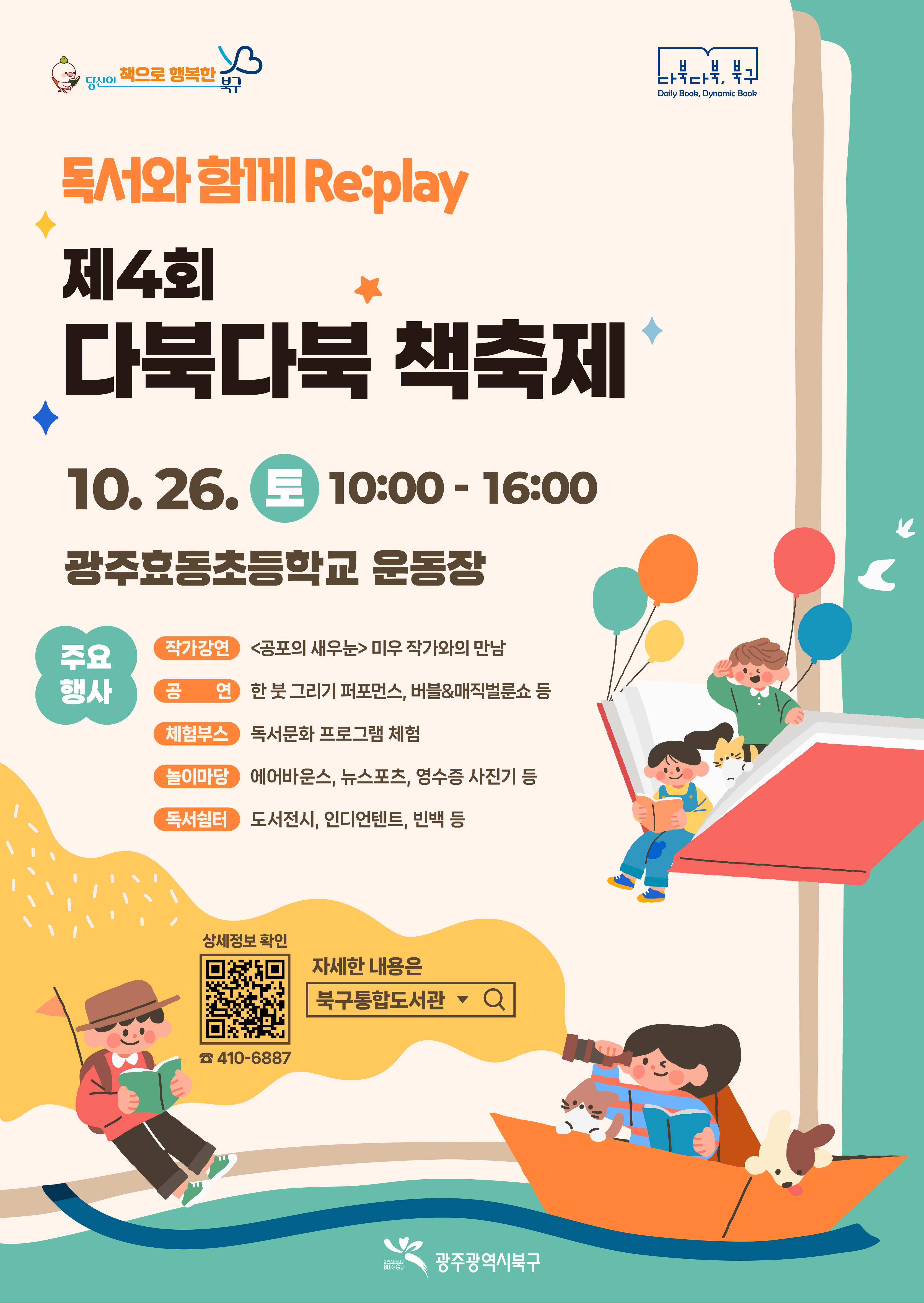우리 구에서는 지역의 독서진흥과 주민 문화 향유를 위해 '2024년 제4회 다북다북 책축제' 행사를 개최합니다.