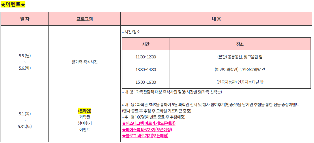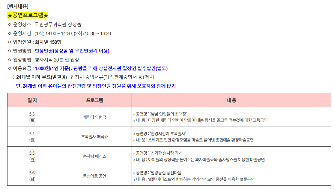 [국립광주과학관] 🎁어린이날 특별 행사 함께해요 !
