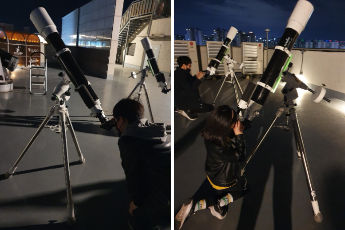 우주 천체에 관련한 전시 외에도 옥상에는 직접 별을 관측하는 망원경을 통해 신비로운 천체를 관측하는 장소도 마련되어 있어요.