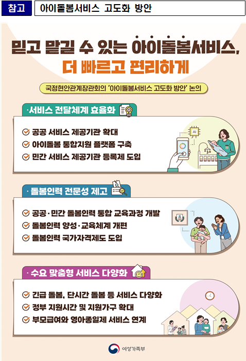 - 2.16(목) 국정현안관계장관회의, '아이돌봄서비스 고도화 방안' 보고