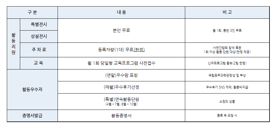 ○ 지원자격 : 과학관을 사랑하고, 과학에 관심 있는 유소년, 청소년을 자녀로 둔 학부모