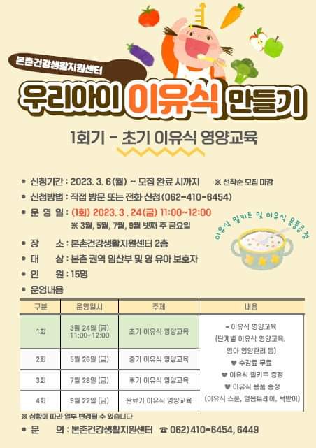 ■ 본촌건강생활지원센터에서는 본촌 권역 보호자를 위해 이유식 영양교육을 진행합니다.