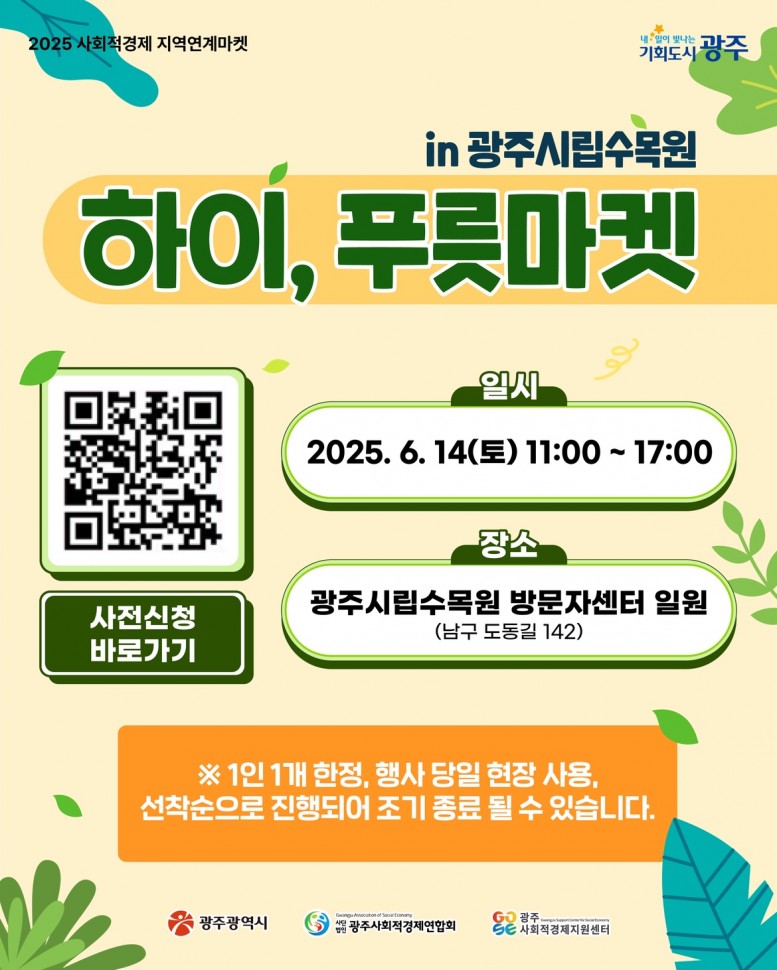 home 맘편한 내★일, 광주아이키움2.0 결혼·임신·출생 영유아 초·중·고 다양한 가족 일생활균형 커뮤니티 아동돌봄지원 소통방 나눔방 광주 아이키움 상담방 돌봄정보방 성폭력 피해 상담 및 사건지원 공지사항 우리동네 돌봄정보 기관별 공지사항 [시청] 하이, 푸릇마켓 ! 아이들 체험 가득 💗 등록일 : 2025-06-09 14:48 카테고리 : 카테고리 없음 작성자 : 운영자 조회수 : 53 첨부파일 푸릇마켓.jpg 다운로드 📌일시 : 25.06.14.(토) 11:00 ~17:00📌장소 : 광주시립수목원 방문자센터 일원 (남구 도동길 142)-> 사전신청 시, 슈링클 무료체험 ![출처: 광주광역시청] 목록