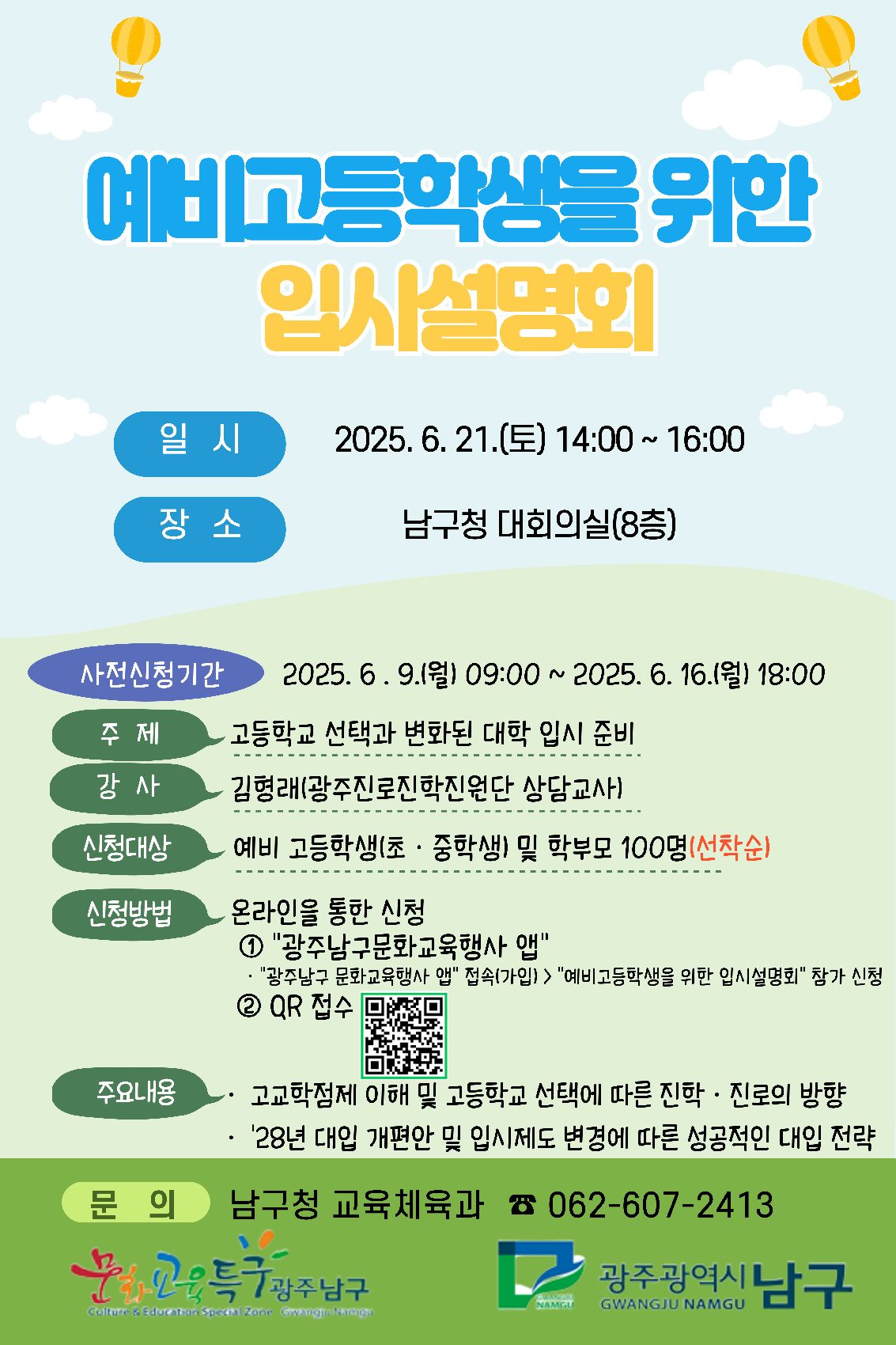 [남구] 예비 고등학생을 위한 입시설명회 개최 안내