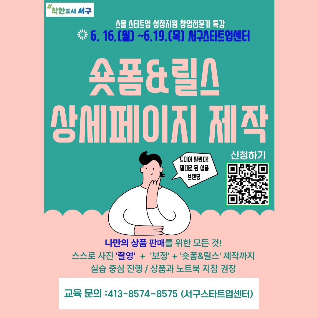 home 맘편한 내★일, 광주아이키움2.0 결혼·임신·출생 영유아 초·중·고 다양한 가족 일생활균형 커뮤니티 아동돌봄지원 소통방 나눔방 광주 아이키움 상담방 돌봄정보방 성폭력 피해 상담 및 사건지원 공지사항 우리동네 돌봄정보 기관별 공지사항 [서구] 숏폼&릴스 상세페이지 제작 특강! 등록일 : 2025-06-16 16:14 카테고리 : 카테고리 없음 작성자 : 운영자 조회수 : 51 나만의 홍보를 위한 모든 것모든 것은 실습과 함께 무료로 진행,숏폼, 릴스, 상세페이지 제작, 브랜드 콘셉트 문구까지 모든 것을 경험하고 배우는 과정광주광역시 서구 '스몰 스타트업 브랜딩 강의'에 있습니다. 개별 일정별로 신청 가능합니다.지금 신청하십시오. 문의 350-4947(서구청 일자리청년지원과) 관심 있는 분들은 문의 주시기 바랍니다. 목록
