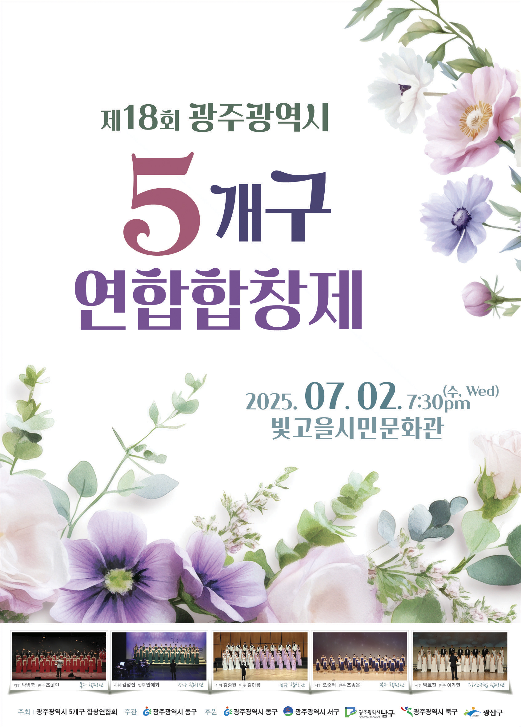 한여름의 길목에서 아름다운 선율로 물드는 5개구 합창단의 공연에 여러분을 초대합니다.