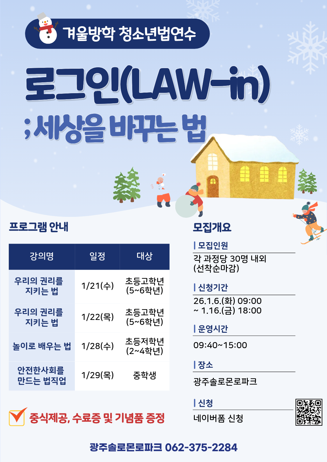 긴 겨울방학 광주솔로몬로파크에 로그인(LAW-in) 하여 세상을 바꾸는 법과 함께 해 보세요!