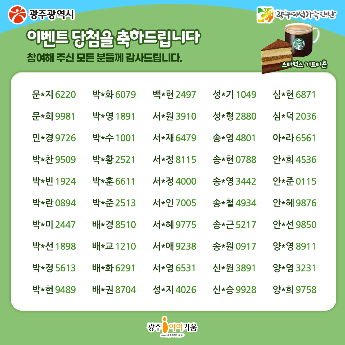 [광주아이키움] 온라인 시민 참여 이벤트 당첨자 발표