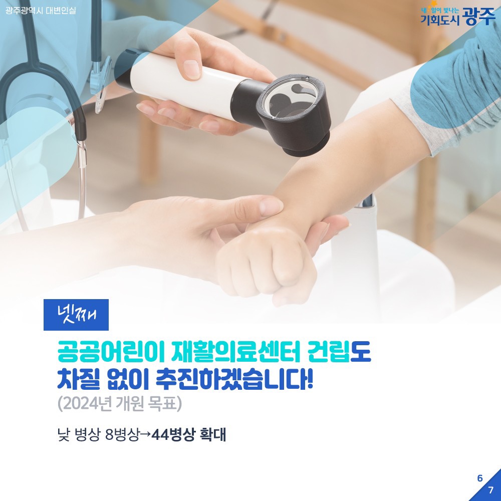 어린이 의료체계 모델을 구축하고, 광주다움 통합돌봄을 결합한 24시 어린이 안심병원을 조성합니다.