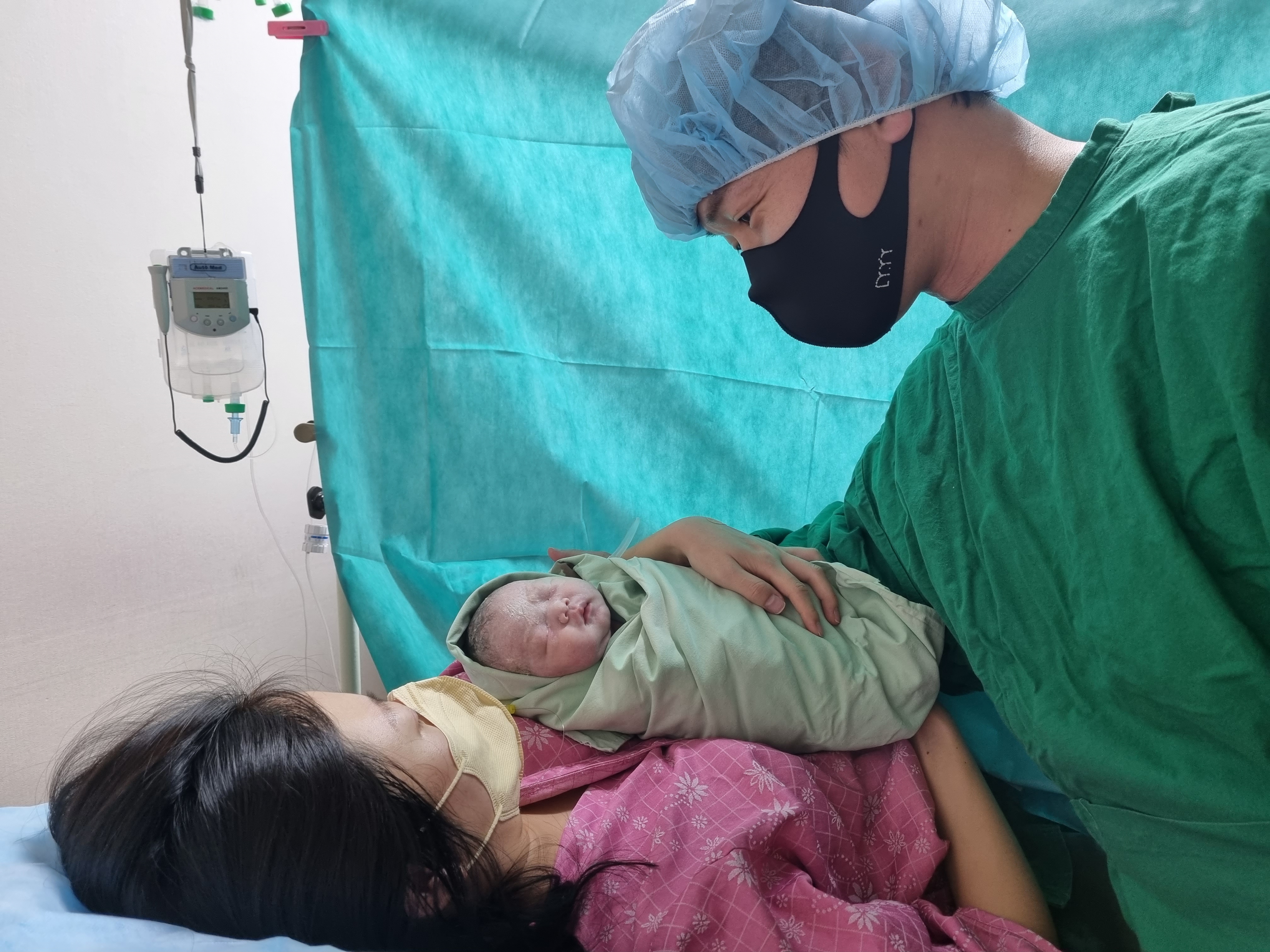 엄마, 아기나왔어요 라는 소리와 동시에 아이 울음소리 들음 -> 눈물 주르륵