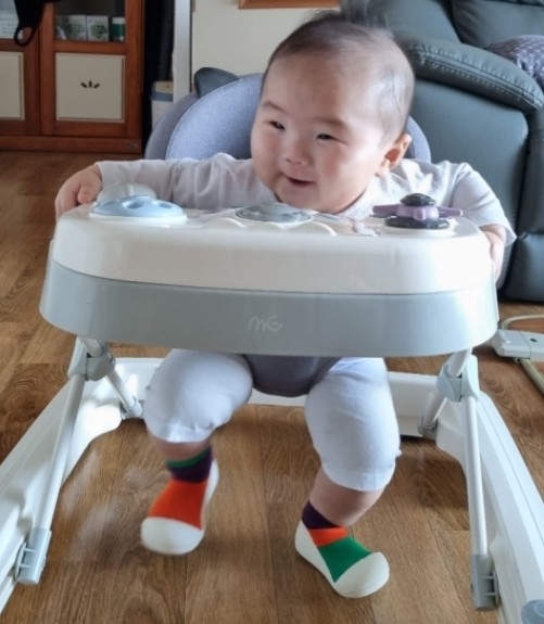 시간은 점점 지나 모유 & 분유양도 늘더니 잠도 잘자고 힘도 세지고 통실통실 살이 오르더구나. 그럴수록 엄마와 아빠의 수면 시간은 줄어들고, 특히 엄마는 다크서클이 무릎까지... 손목, 허리, 어깨 등 부모의 몸을 희생할 수록 너는 자랐지. 엄마, 아빠에게 보여주는 웃음과 눈맞춤이 이 모든 힘듦을 싹다 잊게 해줬어!