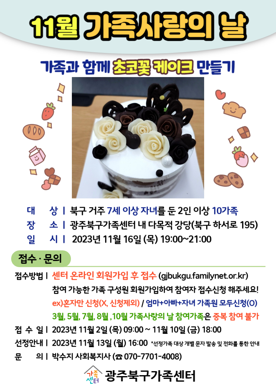 [북구가족센터] 11월 가족사랑의 날_가족과 함께 초코케이크 만들기