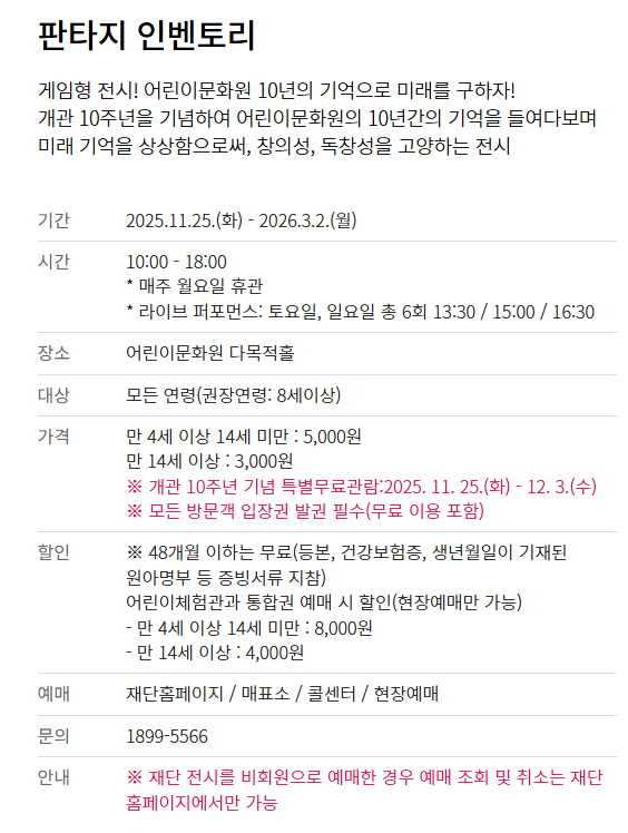 home 맘편한 내★일, 광주아이키움2.0 결혼·임신·출생 영유아 초·중·고 다양한 가족 일생활균형 커뮤니티 아동돌봄지원 소통방 나눔방 광주 아이키움 상담방 돌봄정보방 성폭력 피해 상담 및 사건지원 공지사항 우리동네 돌봄정보 기관별 공지사항 [ACC]개관 10주년 기념 어린이 특별전시 '판타지인벤토리' 등록일 : 2025-12-09 14:01 카테고리 : 카테고리 없음 작성자 : 운영자 조회수 : 77 출처:국립아시아문화전당ACC 목록