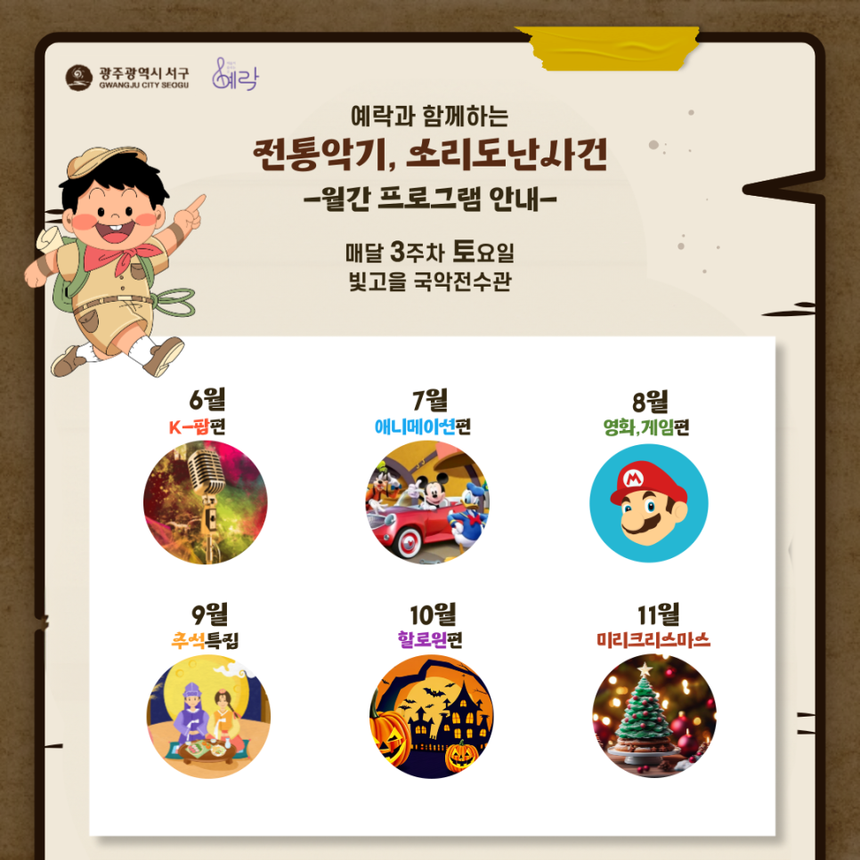 home 맘편한 내★일, 광주아이키움2.0 결혼·임신·출생 영유아 초·중·고 다양한 가족 일생활균형 커뮤니티 아동돌봄지원 소통방 나눔방 광주 아이키움 상담방 돌봄정보방 성폭력 피해 상담 및 사건지원 공지사항 우리동네 돌봄정보 기관별 공지사항 [서구] 국악기탐정단 - 공연학습 등록일 : 2024-07-04 13:44 카테고리 : 카테고리 없음 작성자 : 운영자 조회수 : 198 <출처> 서구청 목록