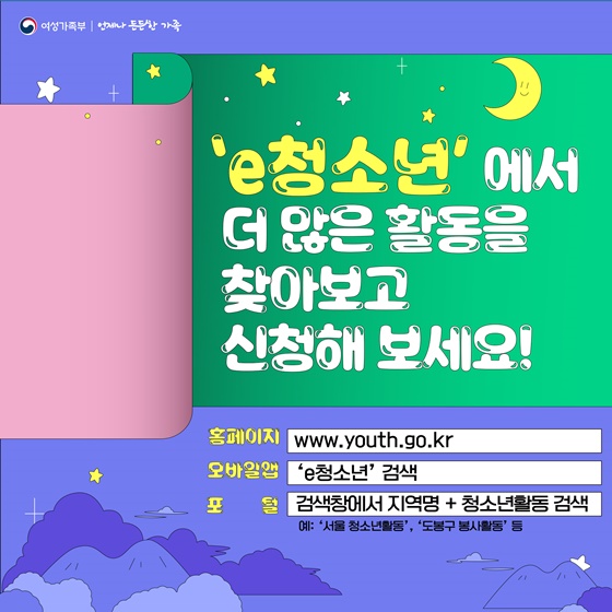 home 맘편한 내★일, 광주아이키움2.0 결혼·임신·출생 영유아 초·중·고 다양한 가족 일생활균형 커뮤니티 아동돌봄지원 소통방 나눔방 광주 아이키움 상담방 돌봄정보방 성폭력 피해 상담 및 사건지원 공지사항 우리동네 돌봄정보 기관별 공지사항 [여성가족부]여름방학 청소년을 위한 1,400가지 체험! 등록일 : 2024-07-31 10:17 카테고리 : 카테고리 없음 작성자 : 운영자 조회수 : 184 [출처 : 여성가족부] 목록