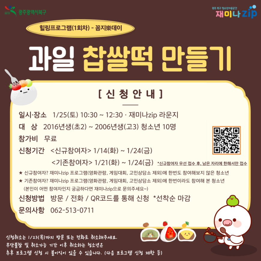 [북구청소년자율공간] 과일 찹쌀떡 만들기 프로그램