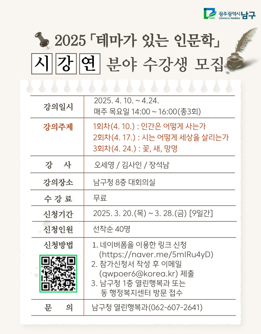 [남구]「테마가 있는 인문학」 시강연 분야 수강생 모집