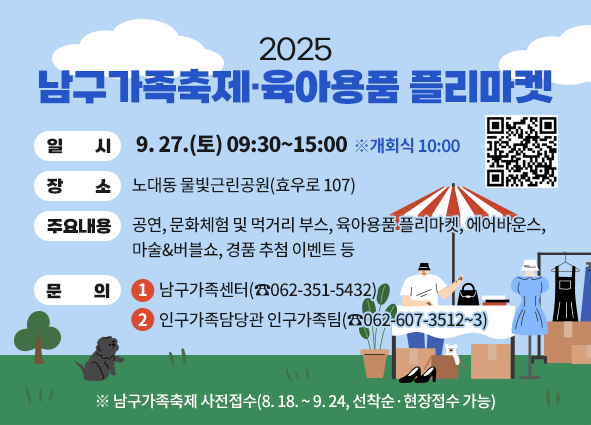 home 맘편한 내★일, 광주아이키움2.0 결혼·임신·출생 영유아 초·중·고 다양한 가족 일생활균형 커뮤니티 아동돌봄지원 소통방 나눔방 광주 아이키움 상담방 돌봄정보방 성폭력 피해 상담 및 사건지원 공지사항 우리동네 돌봄정보 기관별 공지사항 [광주광역시 남구청] 남구가족축제·육아용품 플리마켓 등록일 : 2025-09-08 14:20 카테고리 : 카테고리 없음 작성자 : 운영자 조회수 : 82 [출처 : 광주광역시 남구청] 목록