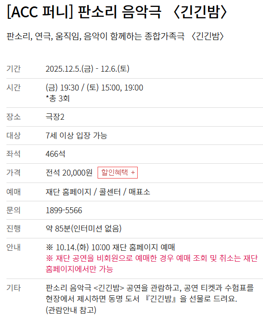 home 맘편한 내★일, 광주아이키움2.0 결혼·임신·출생 영유아 초·중·고 다양한 가족 일생활균형 커뮤니티 아동돌봄지원 소통방 나눔방 광주 아이키움 상담방 돌봄정보방 성폭력 피해 상담 및 사건지원 공지사항 우리동네 돌봄정보 기관별 공지사항 [ACC]판소리음악극 '긴긴밤' 등록일 : 2025-11-17 10:58 카테고리 : 카테고리 없음 작성자 : 운영자 조회수 : 73 출처:국립아시아문화전당 목록