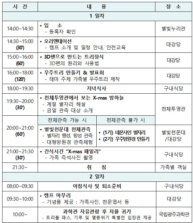 [별빛천문대]크리스마스 천문우주 가족캠프