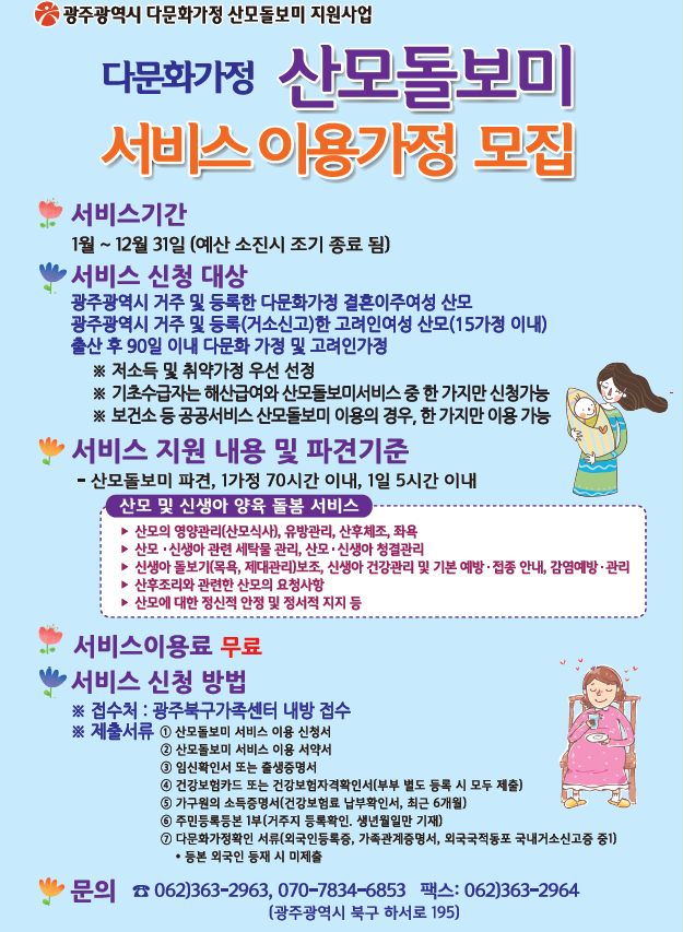 참여대상 광주광역시 거주 출산 후 60일 이내 다문화가정 및 고려인가정