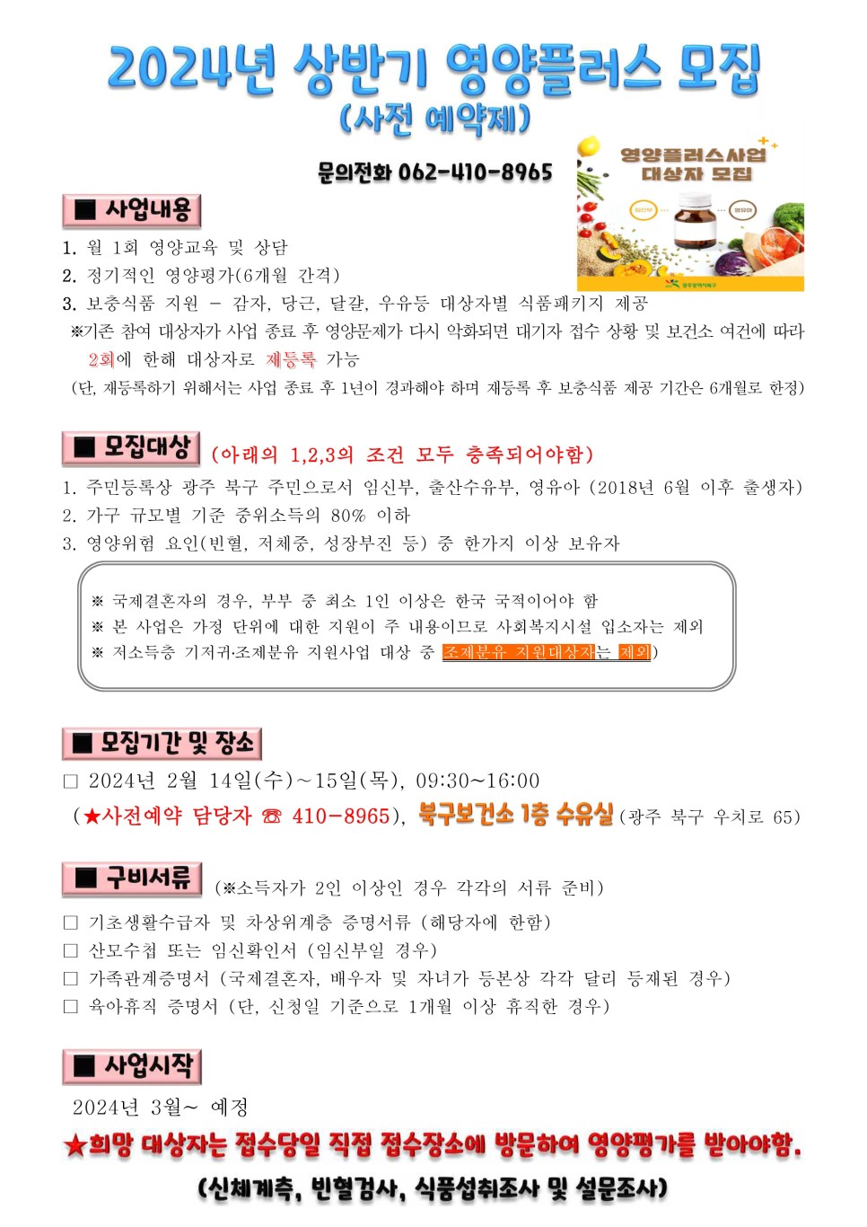 북구 🥕2024년 상반기 영양플러스 모집🥕