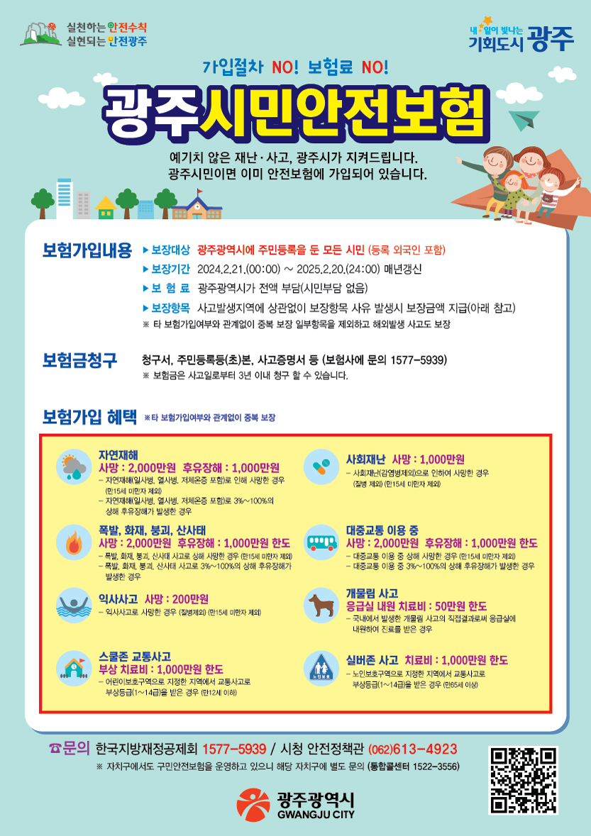home 맘편한 내★일, 광주아이키움2.0 결혼·임신·출생 영유아 초·중·고 다양한 가족 일생활균형 커뮤니티 아동돌봄지원 소통방 나눔방 광주 아이키움 상담방 돌봄정보방 성폭력 피해 상담 및 사건지원 공지사항 우리동네 돌봄정보 기관별 공지사항 시민 누구나 보장받아요! 광주시민안전보험 등록일 : 2024-02-28 10:05 카테고리 : 카테고리 없음 작성자 : 운영자 조회수 : 303 가입 절차 NO! 보험료 NO! 나도 모르게 나를 지키는 보험이 있다?광주시민이라면 누구나 든든하게재난과 사고로부터 보호합니다! 재난과 사고로 피해를 입은시민의 신속한 일상 회복을 지원하는 ‘광주시민안전보험’이더 큰 보장항목과 한도로 돌아왔어요~ [출처] 시민 누구나 보장받아요! 광주시민안전보험을 아시나요?|작성자 광주광역시 목록