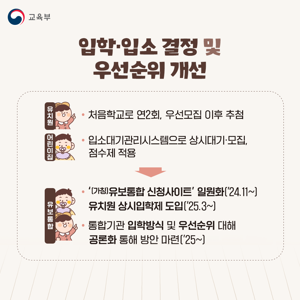 home 맘편한 내★일, 광주아이키움2.0 결혼·임신·출생 영유아 초·중·고 다양한 가족 일생활균형 커뮤니티 아동돌봄지원 소통방 나눔방 광주 아이키움 상담방 돌봄정보방 성폭력 피해 상담 및 사건지원 공지사항 우리동네 돌봄정보 기관별 공지사항 [교육부] 세계 최고 영유아 교육·보육 등록일 : 2024-07-09 13:13 카테고리 : 카테고리 없음 작성자 : 운영자 조회수 : 196 0세부터 국민안심 책임교육·보육의 시작세계 최고 영유아 교육·보육<출처> 교육부 목록