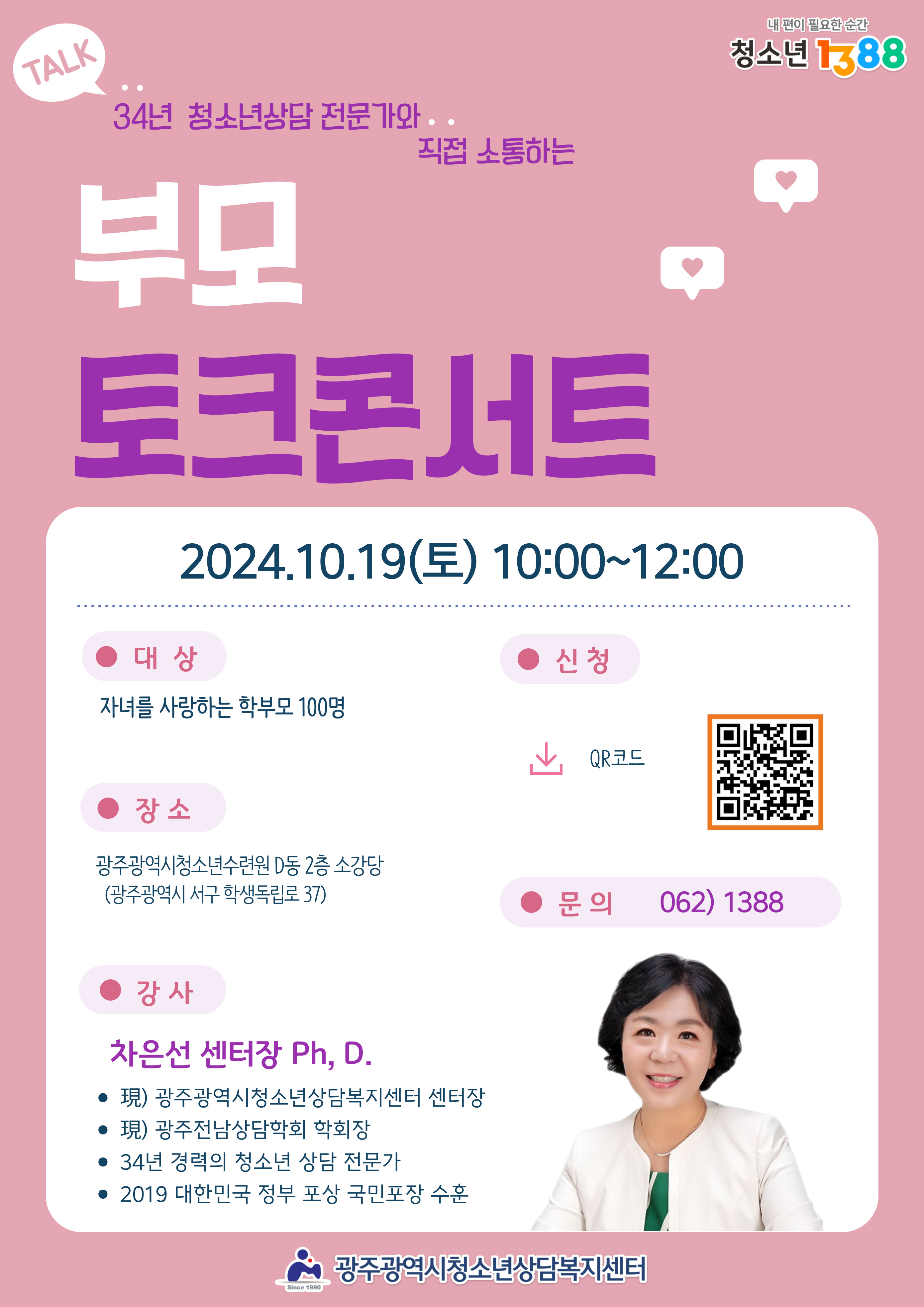 문의: ☎ 062-1388 교육연수팀(고희영 상담원)