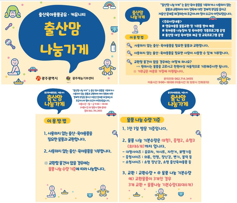 광주에서 출산용품을 나눔하고 싶다면 ? 출산맘 나눔가게를 이용해보세요.