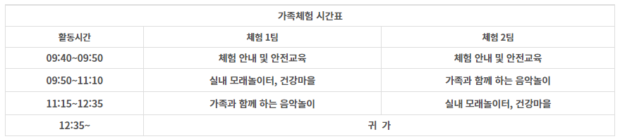 4. 가족 체험교육 시간표