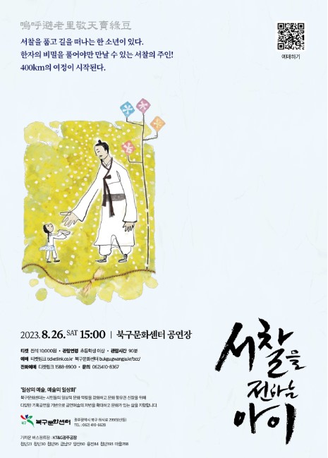 home 맘편한 내★일, 광주아이키움2.0 결혼·임신·출생 영유아 초·중·고 다양한 가족 일생활균형 커뮤니티 아동돌봄지원 소통방 나눔방 광주 아이키움 상담방 돌봄정보방 성폭력 피해 상담 및 사건지원 공지사항 우리동네 돌봄정보 기관별 공지사항 [특별기획/연극] 방방곡곡 문화공감#1, 서찰을 전하는 아이 등록일 : 2023-07-24 15:40 카테고리 : 카테고리 없음 작성자 : 운영자 조회수 : 306 ○ 일 시 : 2023.08.26.(토) 15:00○ 관람연령 : 8세 이상○ 관람시간 : 90분○ 관 람 료 : 전석 10,000원○ 문의 : 062-410-8367○ 티켓예매 : 티켓링크(http://www.ticketlink.co.kr) 북구문화센터 홈페이지<출처 : 광주 북구청> 목록