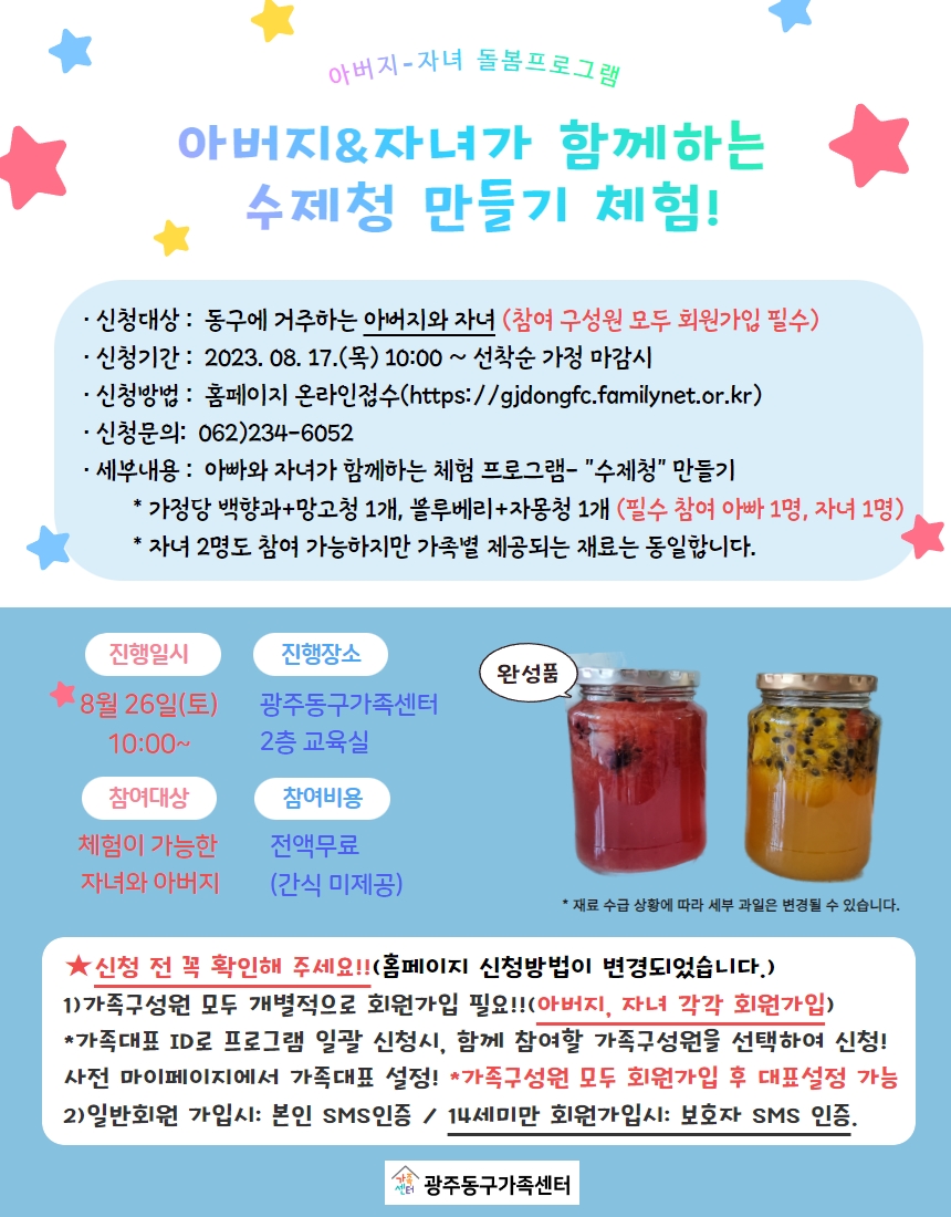 [동구가족센터] 아버지-자녀돌봄프로그램 "수제청 만들기"