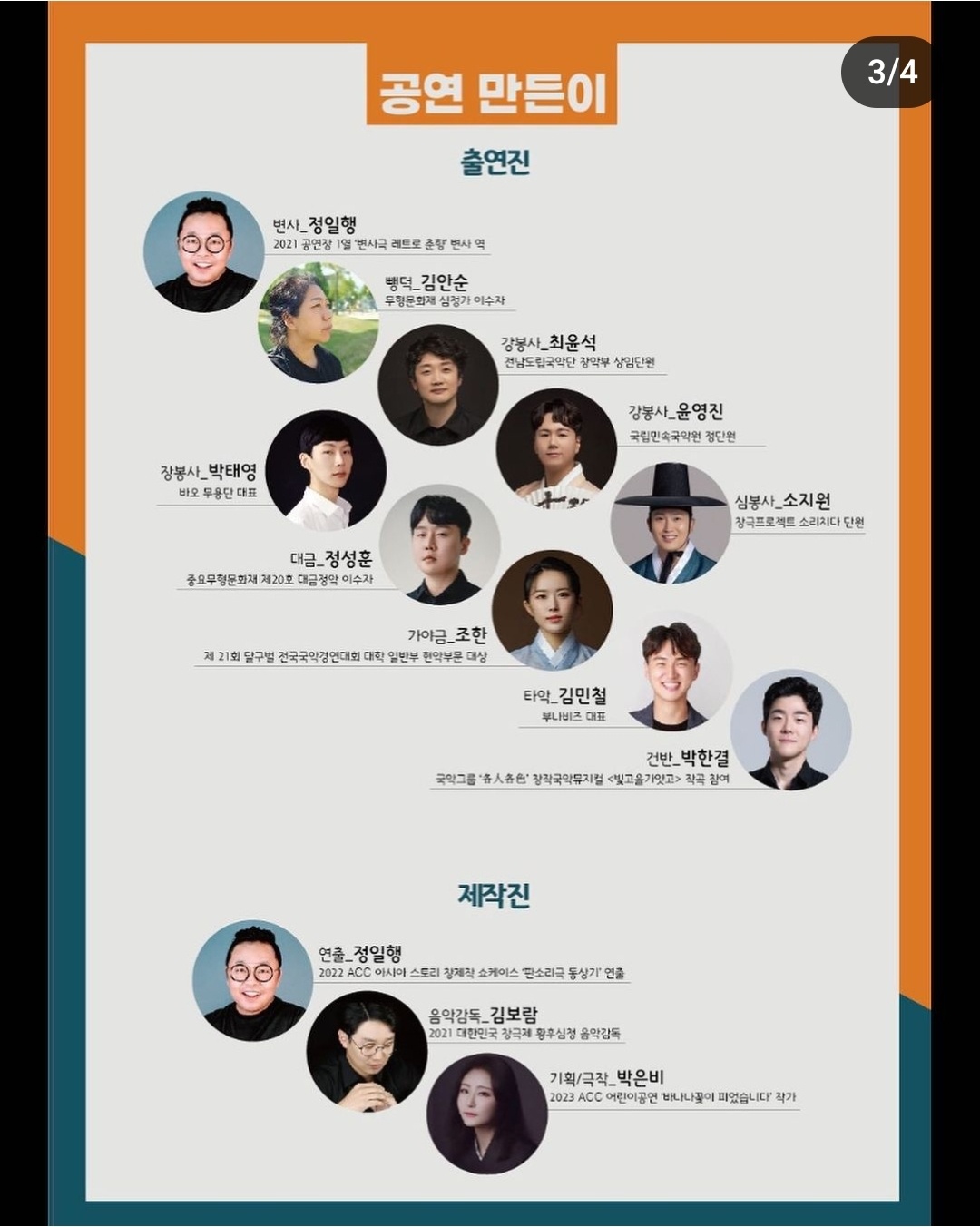 이 공연은 광주광역시 광주문화재단의 2023 야외공연창작지원사업으로 지원받아 제작되었습니다.