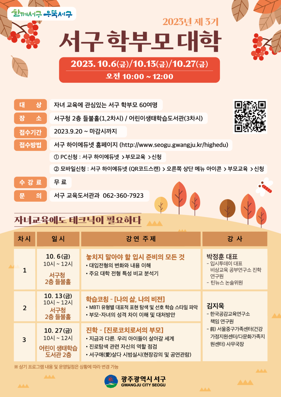 [서구청] 제3기 서구 학부모대학 '자녀교육에도 테크닉이 필요하다'