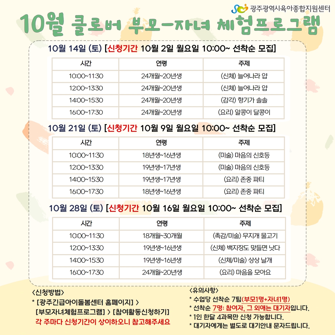 [광주육아종합지원센터] 10월 부모-자녀 체험프로그램