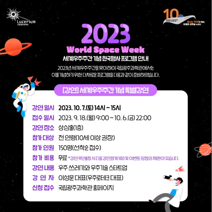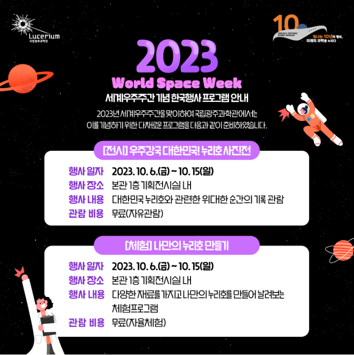 [국립광주과학관] 2023년 세계우주주간 기념 한국행사 프로그램 안내