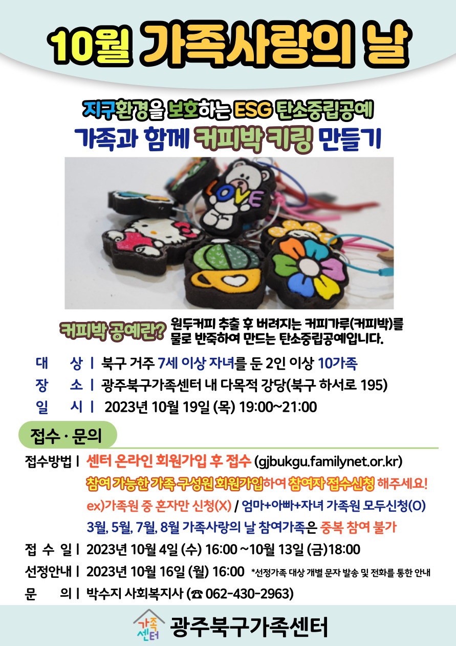 [북구가족센터] 10월 가족사랑의 날_가족과 함께 커피박 키링 만들기