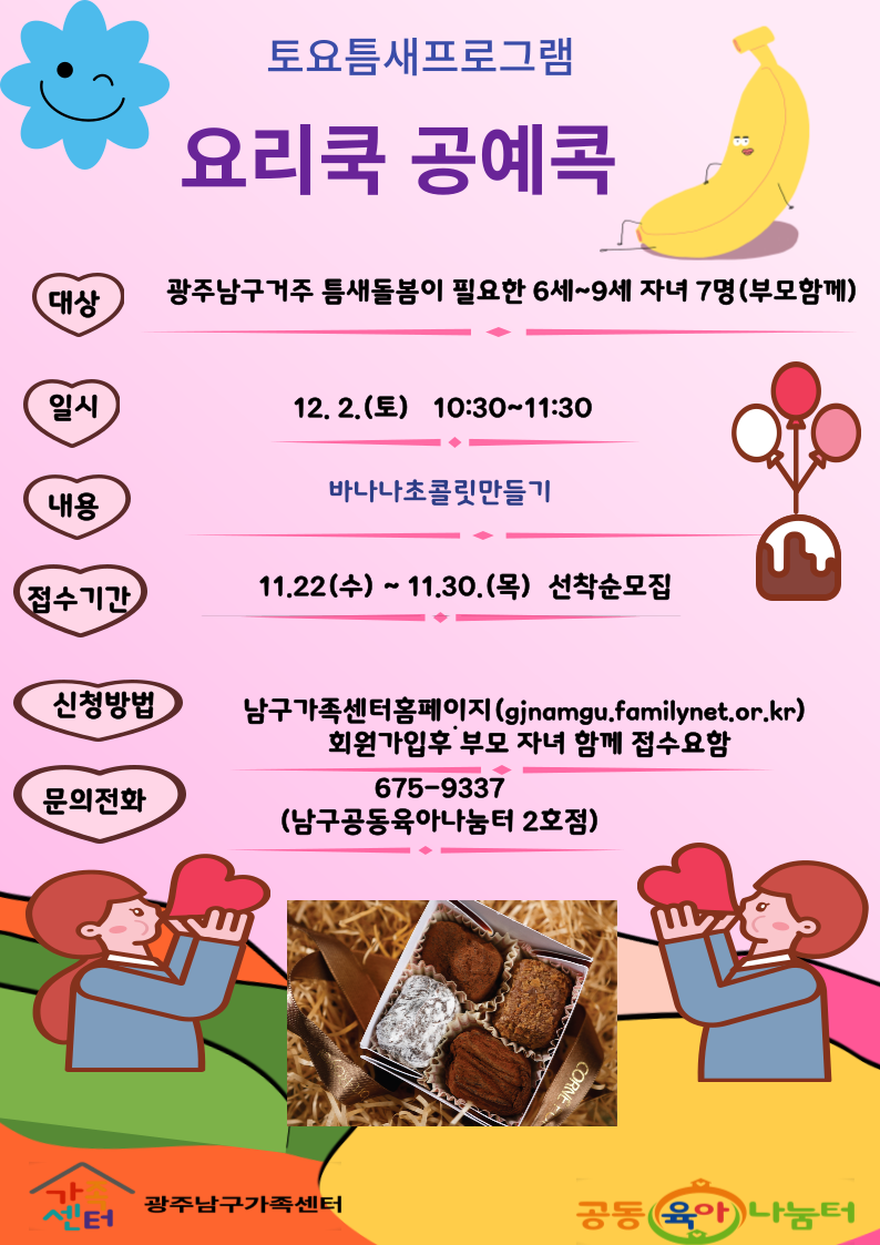 참여대상 광주남구거주 틈새돌봄이 필요한 6세~9세 부모-자녀 (자녀7명)
