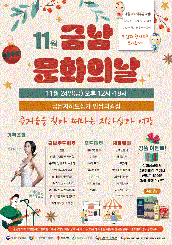 문의 : 금남지하도상가 2공구 문광형시장육성사업단 010-8819-1989