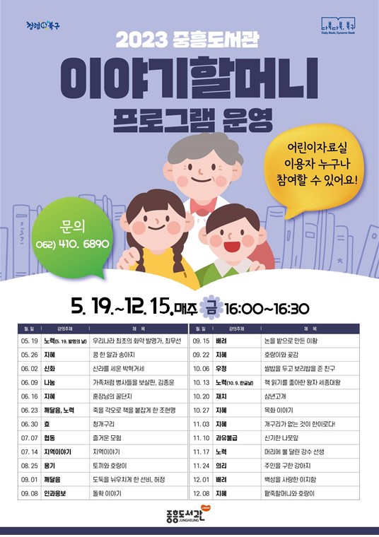 [중흥도서관] '이야기 할머니' 프로그램 운영 연장 안내