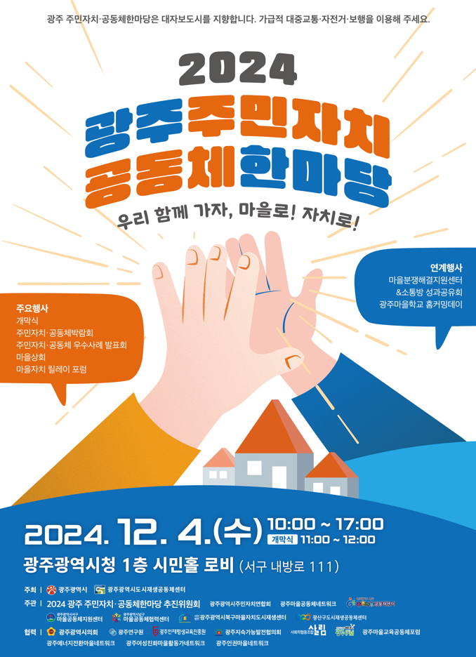 「2024 광주 주민자치·공동체 한마당」을 개최합니다.