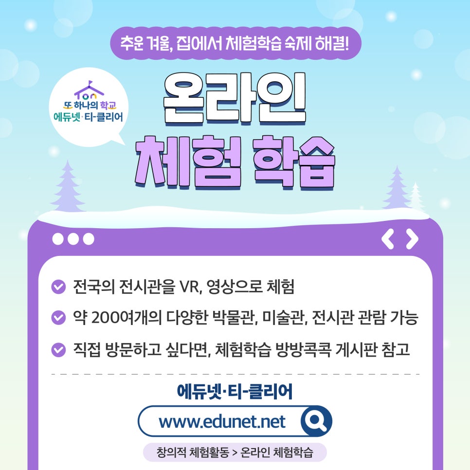 home 맘편한 내★일, 광주아이키움2.0 결혼·임신·출생 영유아 초·중·고 다양한 가족 일생활균형 커뮤니티 아동돌봄지원 소통방 나눔방 광주 아이키움 상담방 돌봄정보방 성폭력 피해 상담 및 사건지원 공지사항 우리동네 돌봄정보 기관별 공지사항 [교육부] 겨울방학 교육·체험 프로그램 소개 등록일 : 2025-01-09 17:05 카테고리 : 카테고리 없음 작성자 : 운영자 조회수 : 158 첨부파일 0108_2024년_겨울방학_교육체험_프로그램_1.jpg 다운로드 프로그램에 따라 모집 일정과방식이 다르니 확인은 필수!다양한 교육과 체험으로알찬 겨울방학 보내세요~⛄❄[출처] 꾸미가 알려주는 겨울방학 교육·체험 프로그램|작성자 교육부 목록