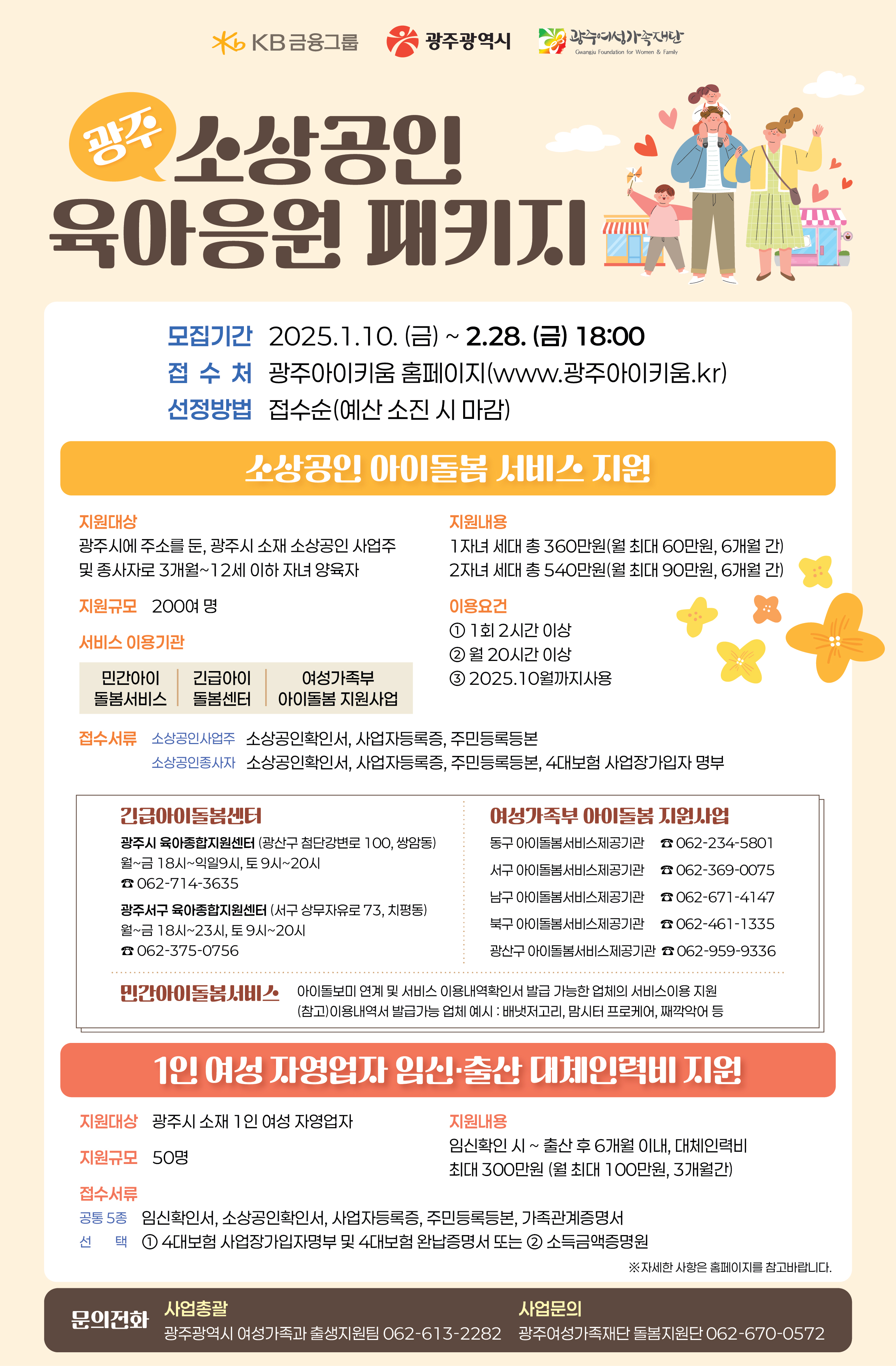 home 맘편한 내★일, 광주아이키움2.0 결혼·임신·출생 영유아 초·중·고 다양한 가족 일생활균형 커뮤니티 아동돌봄지원 소통방 나눔방 광주 아이키움 상담방 돌봄정보방 성폭력 피해 상담 및 사건지원 공지사항 우리동네 돌봄정보 기관별 공지사항 소상공인 육아응원 패키지 사업 안내 등록일 : 2025-01-20 10:57 카테고리 : 카테고리 없음 작성자 : 운영자 조회수 : 162 목록