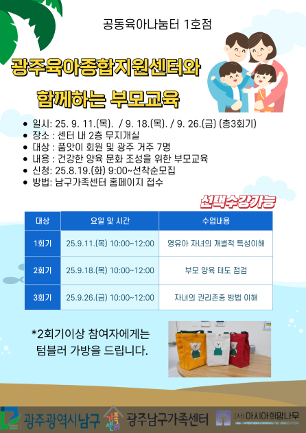 home 맘편한 내★일, 광주아이키움2.0 결혼·임신·출생 영유아 초·중·고 다양한 가족 일생활균형 커뮤니티 아동돌봄지원 소통방 나눔방 광주 아이키움 상담방 돌봄정보방 성폭력 피해 상담 및 사건지원 공지사항 우리동네 돌봄정보 기관별 공지사항 [광주남구가족센터] 함께하는 부모교육 등록일 : 2025-09-10 14:08 카테고리 : 카테고리 없음 작성자 : 운영자 조회수 : 70 [출처 : 광주남구가족센터] 목록